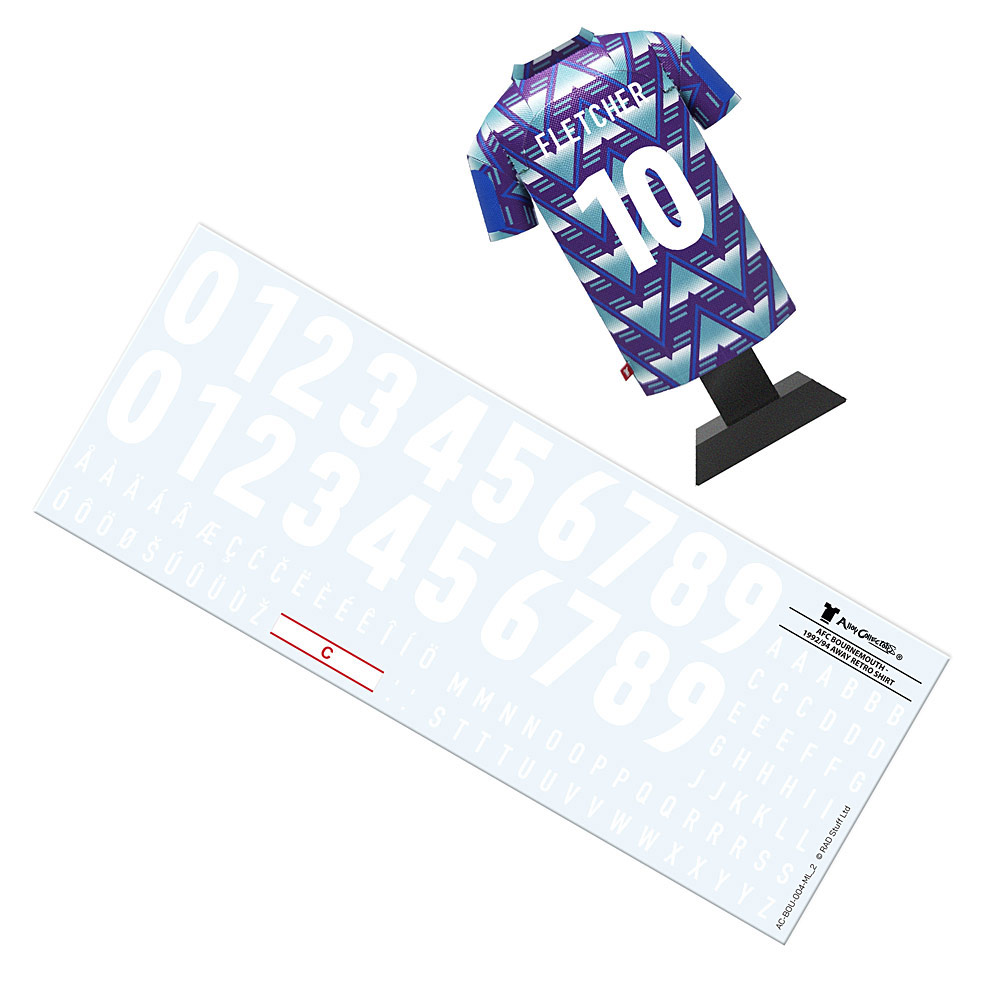 Celebrate a bold era in the club’s history with this AFC Bournemouth 1992/94 metal retro shirt model, inspired by the iconic “Pizza” away kit. Faithfully reproduced in striking purple and green, the design captures the distinctive geometric pattern and period club crest, just like the original. Expertly crafted from metal, this detailed replica offers a durable and eye-catching tribute that stands proudly on display. Supplied in a smart gift box and complete with letters and numbers for personalisation, it makes a thoughtful keepsake for any supporter looking to honour a memorable chapter in AFC Bournemouth’s story.