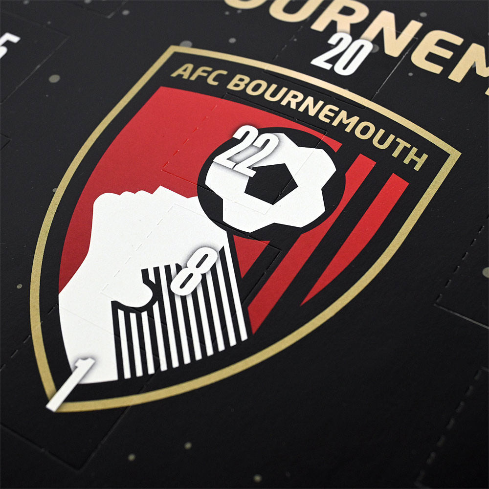 Count down to Christmas in true Cherries style with the AFC Bournemouth Chocolate Advent Calendar. Featuring a festive stadium design complete with the club’s crest, this calendar brings a touch of matchday magic to the holiday season. Behind each numbered door from 1 to 24 awaits a delicious milk chocolate treat shaped with a football twist – the perfect way for any AFC Bournemouth supporter to celebrate the run-up to Christmas.
