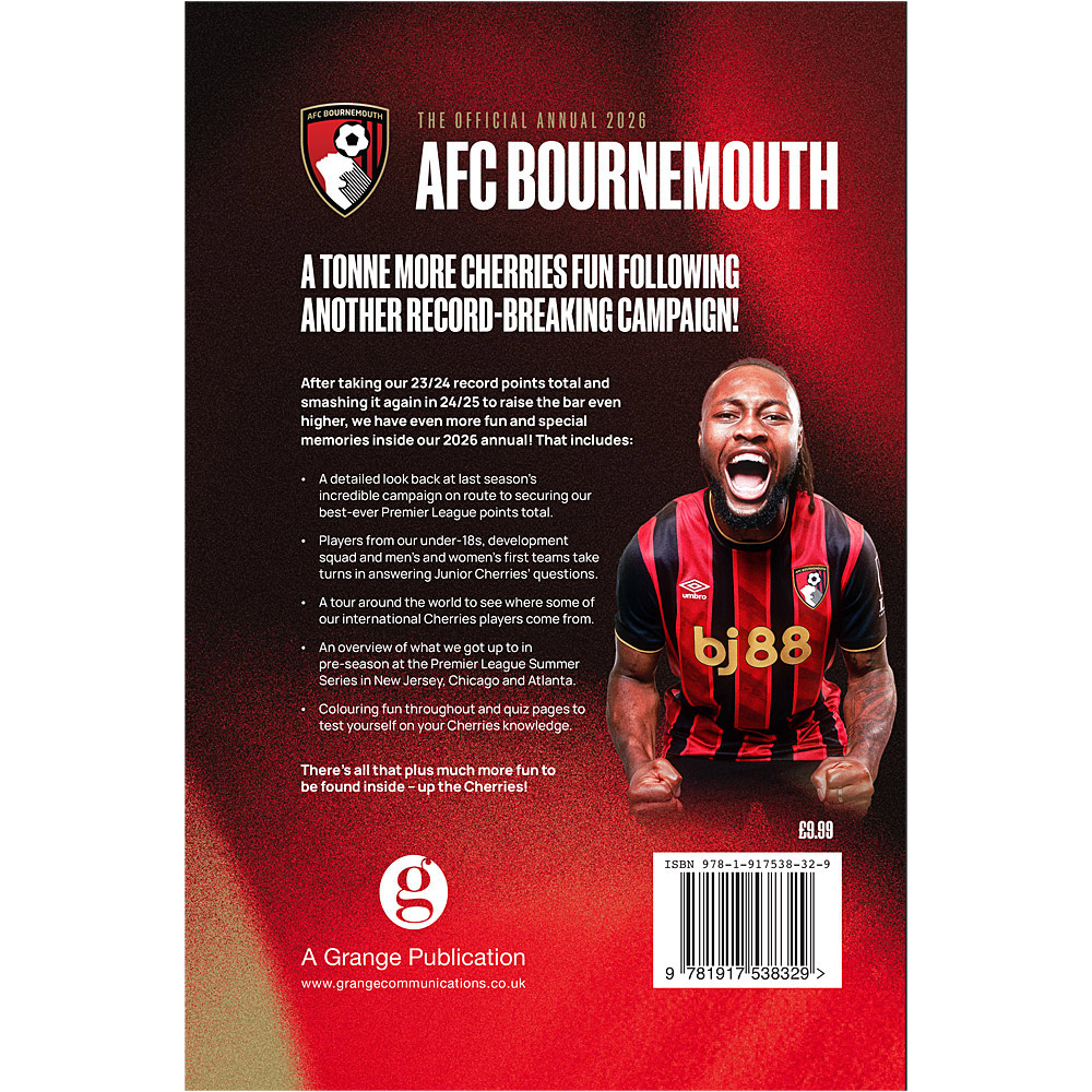 Get ready for another exciting year with the AFC Bournemouth 2026 Annual – the ultimate read for Cherries fans of all ages. Packed with fun features, facts, and quizzes, this 63-page book includes in-depth coverage of the first team, women’s team, and development squads, plus a special Q&A with Antoine Semenyo. With anagrams, crosswords, and plenty more to enjoy, it’s an engaging and entertaining addition to any supporter’s collection or a perfect gift for young fans.