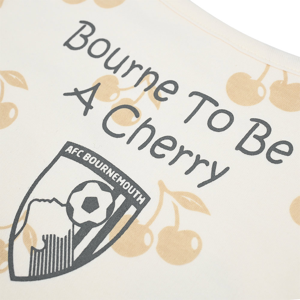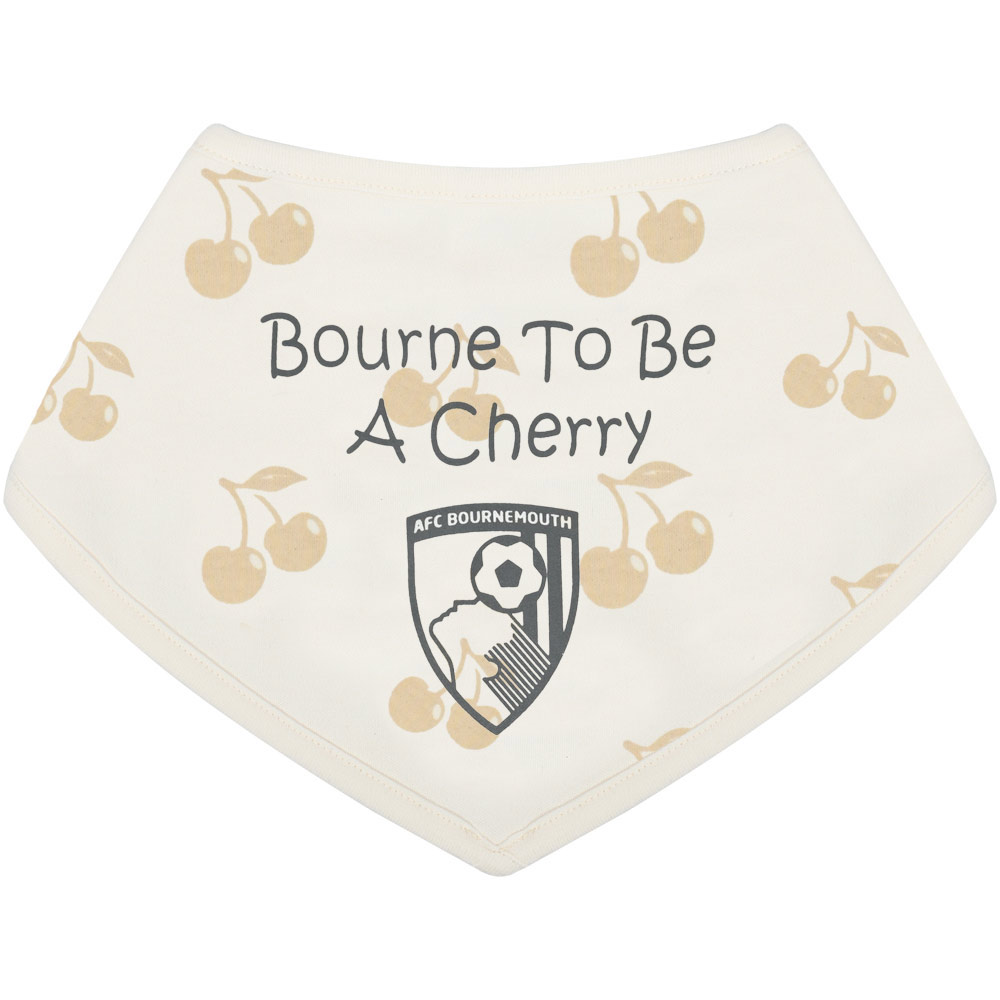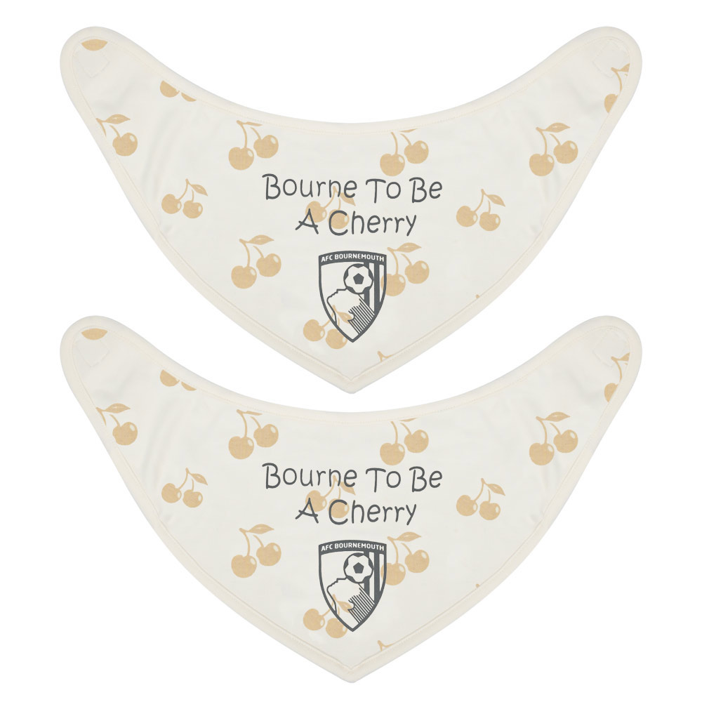 Make mealtimes a little more special for the newest Cherries supporters with this AFC Bournemouth Bourne To Be A Cherry 2 pack bandana bib set. Crafted from soft, absorbent cotton in a natural colour, these baby bibs are designed to be gentle on delicate skin while helping to keep outfits clean. Featuring an all-over Cherries print alongside the “Bourne To Be A Cherry” slogan and club crest, they add a fun football themed touch to everyday babywear. Finished with an easy-fitting, safe hook and loop fastening, they’re a practical and eye-catching choice for everyday feeding.