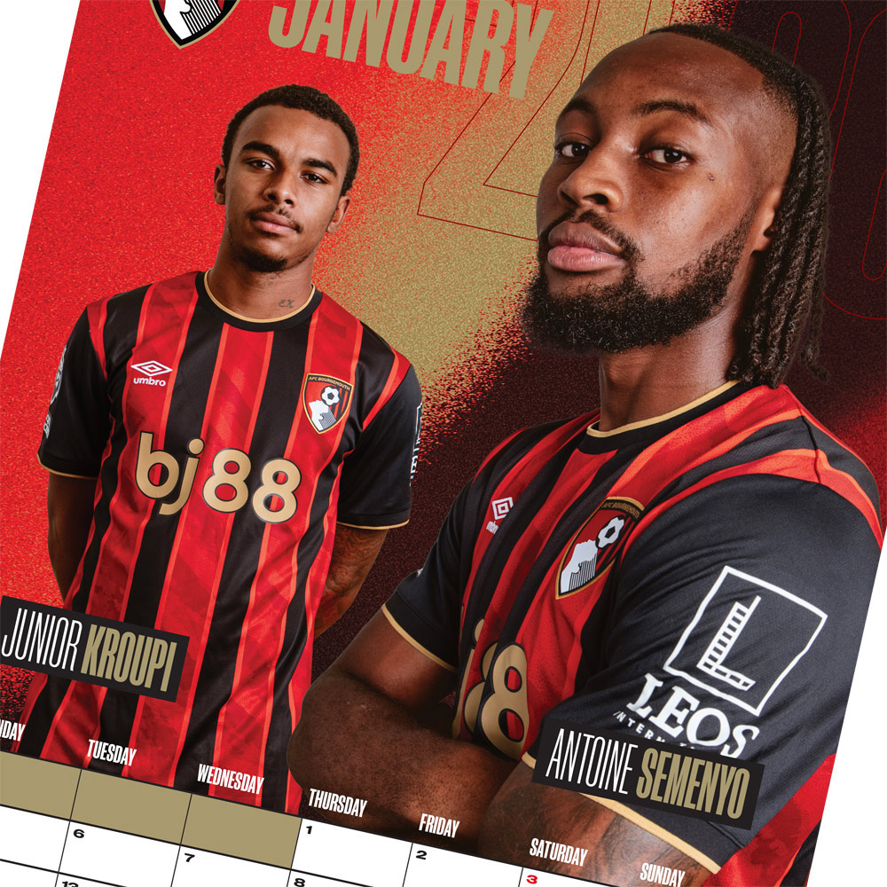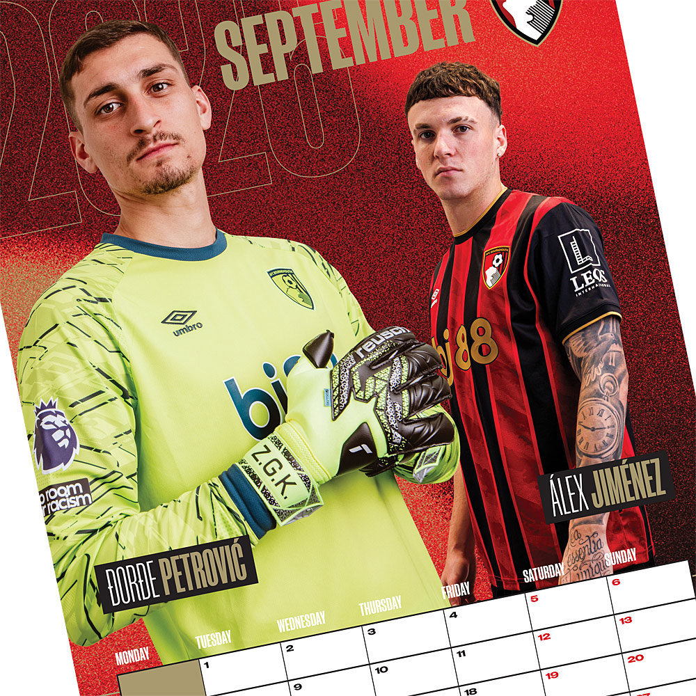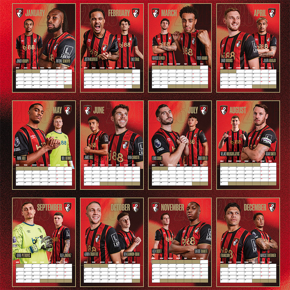 Our 2026 calendar will make the perfect gift for any Cherries supporter. The glossy A3 calendar features all of the 2025/26 first team squad players, with a handy month planner, and runs from January to December 2026.
