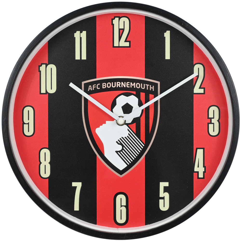 Light up your space with the AFC Bournemouth Glow in the Dark Wall Clock - the perfect way to show your Cherries pride around the home. Finished in the club’s bold red and black stripes, this eye-catching clock features glow-in-the-dark numbers and hands, ensuring you can keep track of time day or night. Ideal for the living room, kitchen, bedroom, or home bar, it adds a fun, sporty touch to any room.