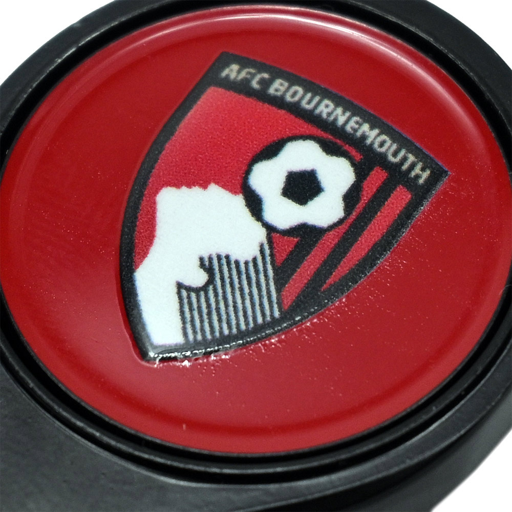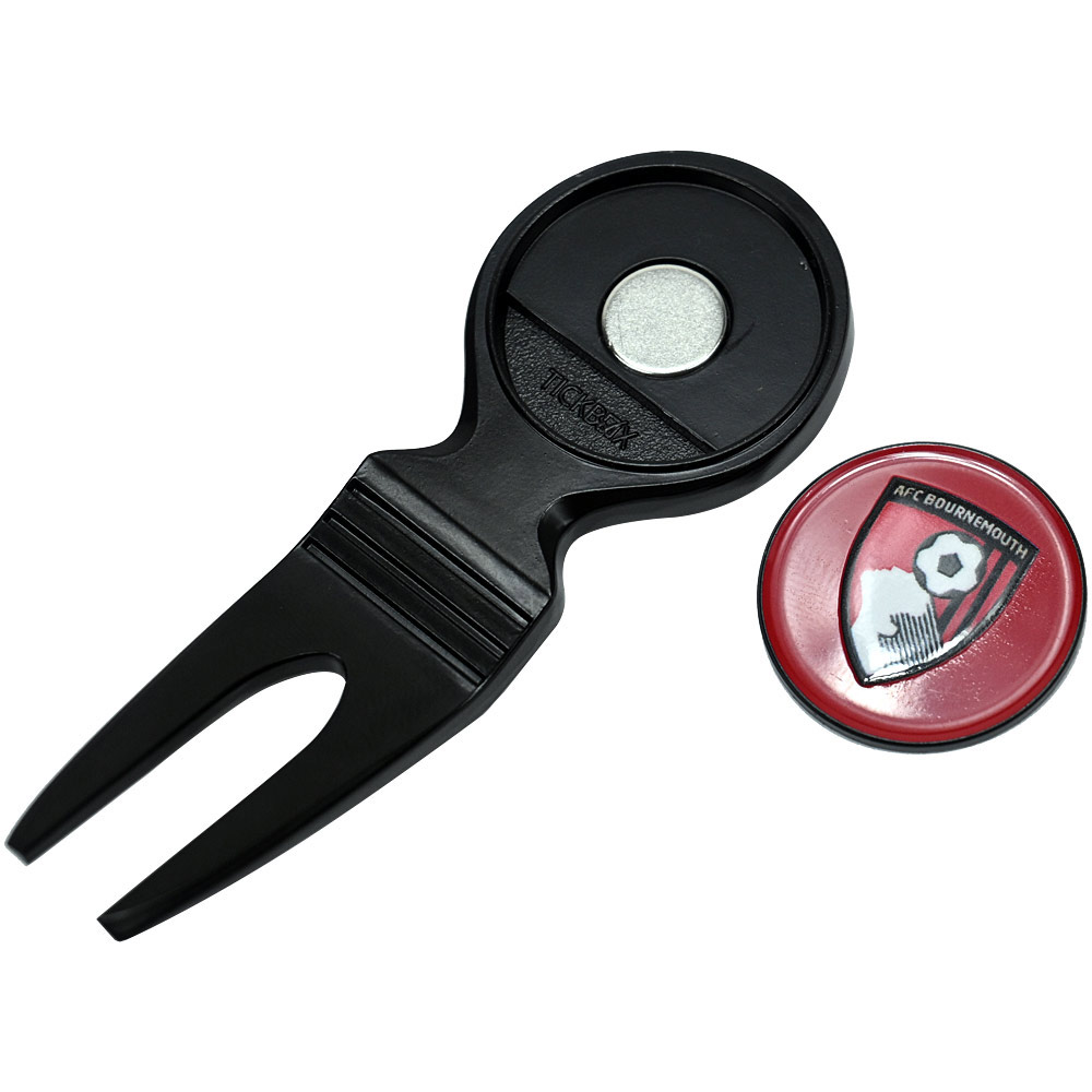 This AFC Bournemouth Golf Pitch Marker and Tee Gift Set is the perfect choice for any Cherries supporter who enjoys time on the course. Featuring four high-quality wooden tees in striking red and black, each printed with the club name, this set adds a touch of team pride to every round. The cast metal pitch repair tool comes with a magnetic ball marker displaying the AFC Bournemouth badge. Designed to keep your game in top condition while showing off your club colours, this set is a fantastic gift for golfers and fans alike.