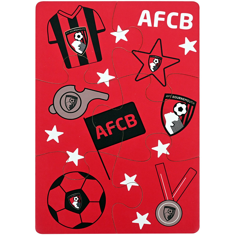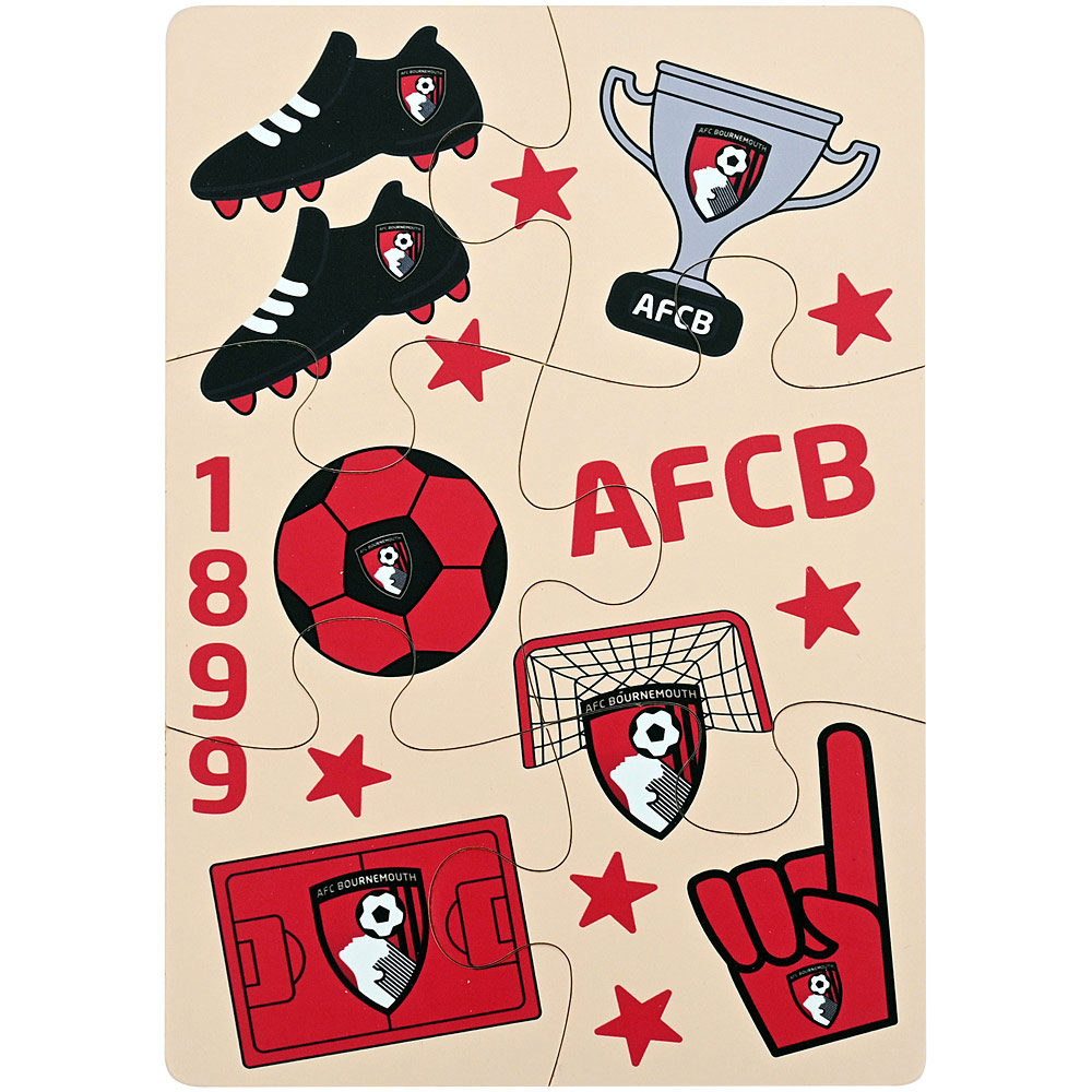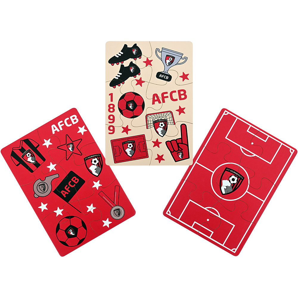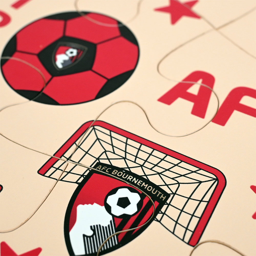Introduce little fans to the world of football with the AFC Bournemouth My First Cherries Jigsaw Set — a fun and educational way to spark creativity! Made from durable wood, this three-pack features three six-piece puzzles, including a football pitch and two football-themed designs, perfect for younger supporters. Sturdy wooden pieces are built to withstand repeated play, making it an ideal activity for developing fine motor skills while sharing the joy of supporting the Cherries.