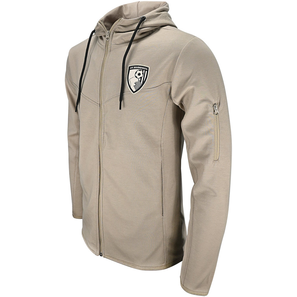 This AFC Bournemouth adults’ landmark full zip hoodie in stone offers a clean, versatile layer made from premium cotton, ideal for lightweight comfort throughout the day. The chevron chest panel adds subtle detailing, while the lace drawstring hood and regular‑fit design ensure an easy, relaxed wear. With two hand pockets and a zipped sleeve pocket for added practicality, the hoodie is finished with a tonal woven club crest on the chest for a subtle finishing touch. Suitable for both men and women, it’s a dependable zip‑up hoodie that works well for everyday use.
