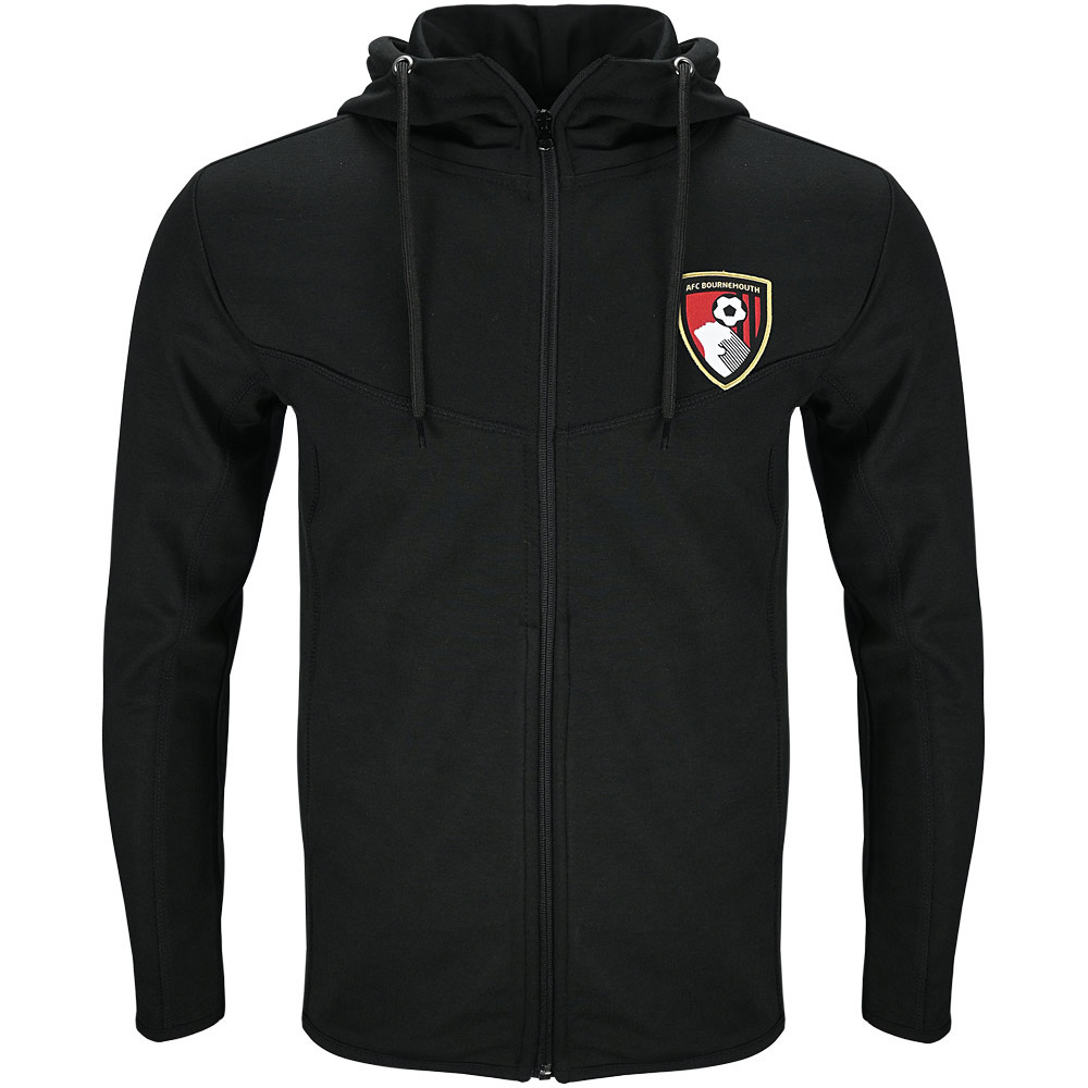 This AFC Bournemouth kids’ landmark zip hood in black is a comfortable, lightweight layer made from soft cotton, ideal for everyday wear. Designed with a full zip front and a chevron chest panel for subtle detailing, it features a lace drawstring hood and a regular‑fit cut for an easy, relaxed feel. Practical touches include two hand pockets and a zipped sleeve pocket for small essentials, while the woven full‑colour club crest on the chest adds a smart AFCB finish. Suitable for both boys and girls, it’s a dependable hoodie for matchdays or every day.