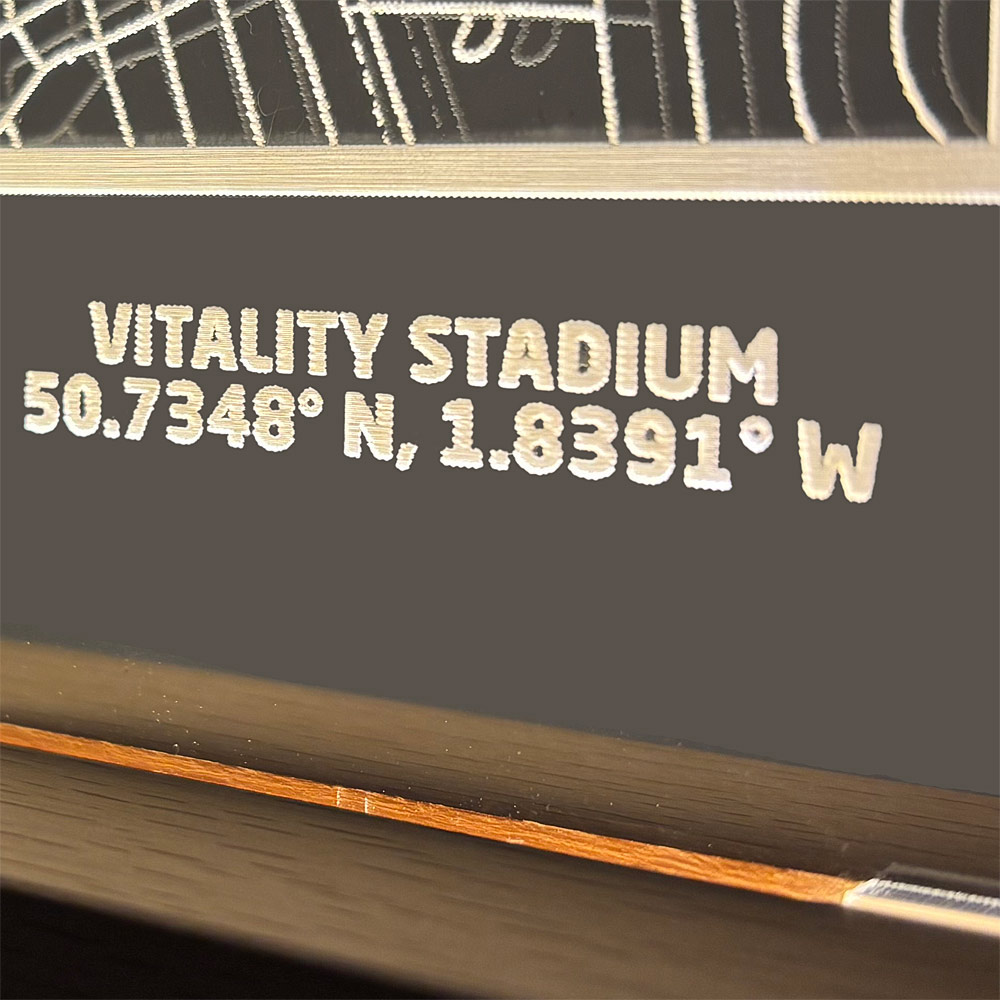 The AFC Bournemouth stadium map LED light is a striking display piece that brings club heritage into any bedroom or fan-cave. Crafted with a solid wooden base and a clear acrylic insert, this LED light highlights the local area with the stadium clearly marked, alongside the stadium co-ordinates and the club crest. The soft LED glow creates a warm, eye-catching effect, making it ideal for shelving or a bedside table. Powered by a switched USB cable for easy use, this compact light measures 18 x 15 x 4cm and makes a great addition to any AFC Bournemouth supporter’s space.