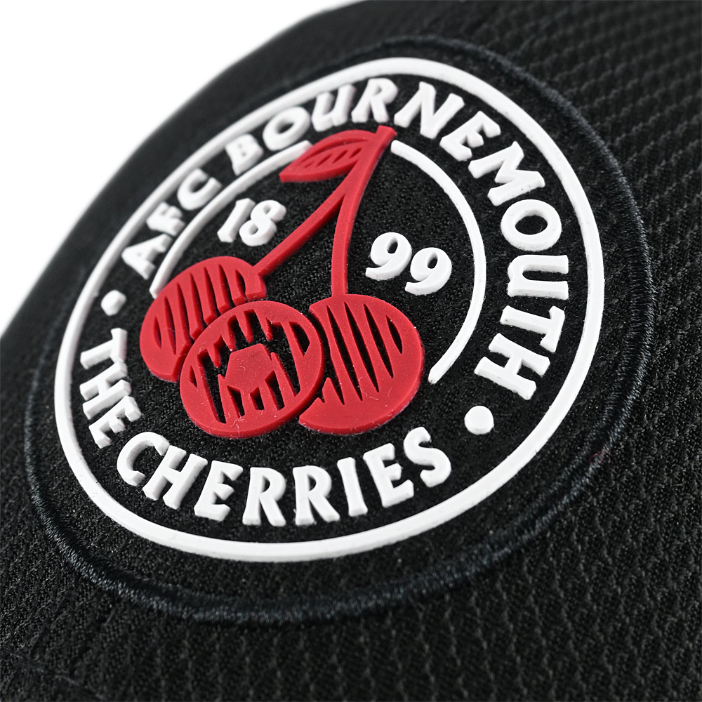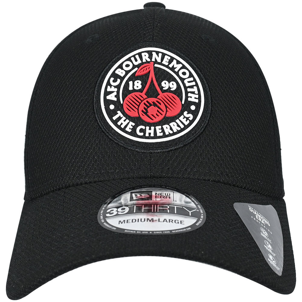The AFC Bournemouth x New Era 39THIRTY Diamond Cherries Crest Cap in black combines high-performance fabric with sleek, stylish design. Made from Polyester Knit Diamond Era fabric, this cap offers superior breathability, moisture-wicking properties, and UV protection, making it perfect for both everyday wear and active lifestyles. The structured 6-panel crown and pre-curved visor provide a comfortable, fitted look, while the stretch-fit design ensures a secure, customisable fit. Featuring a silicon Cherries crest on the crown and the iconic embroidered New Era flag on the side, this cap brings together durability, comfort, and support for the Cherries in style.