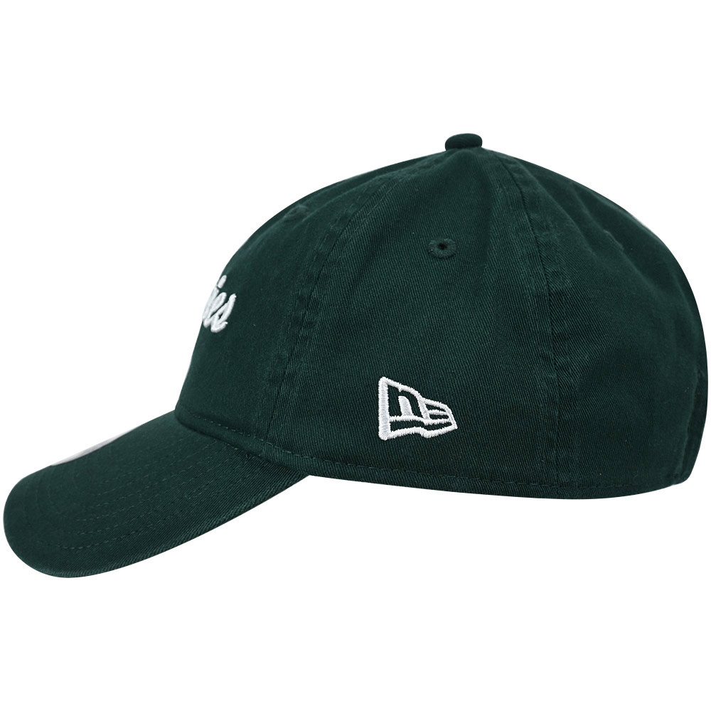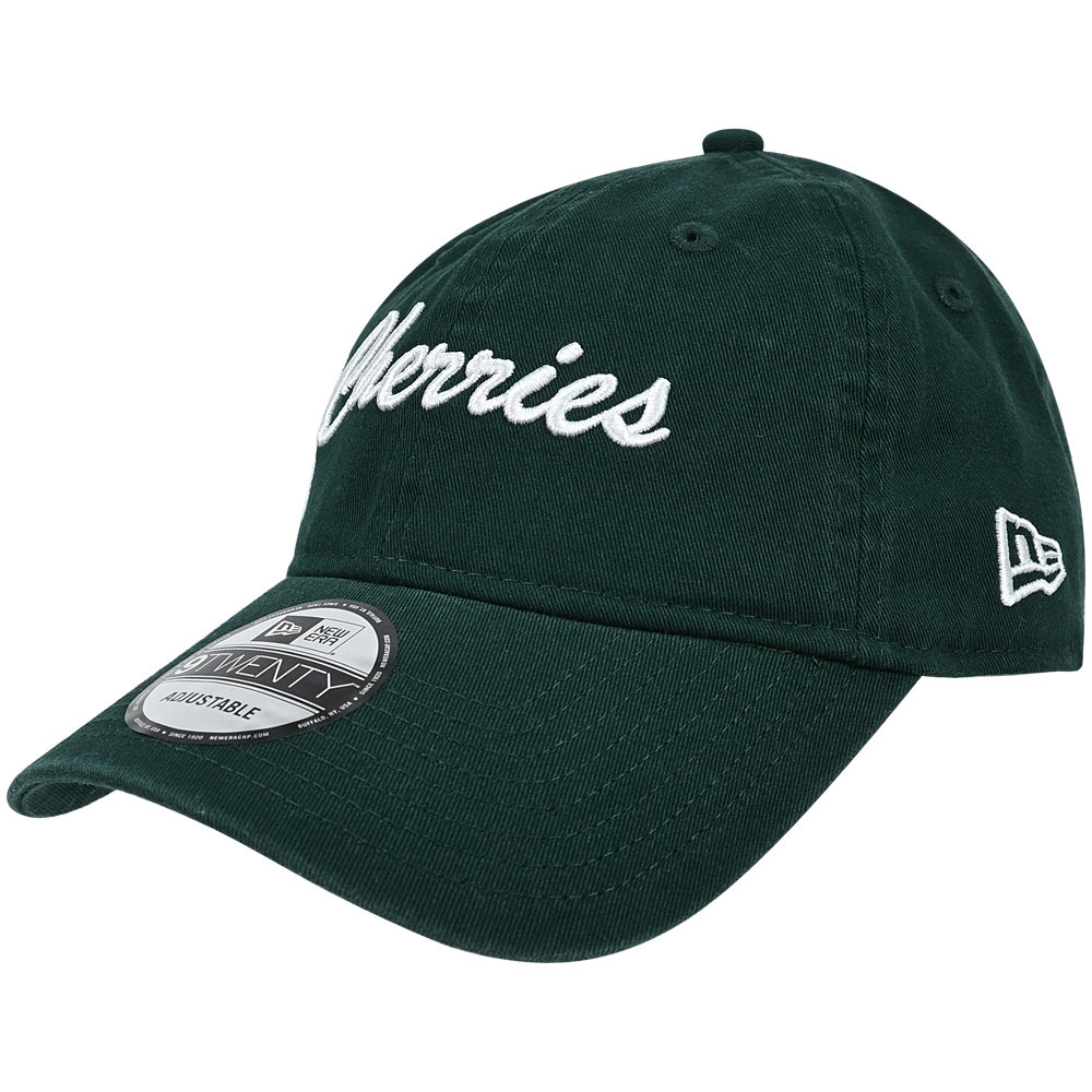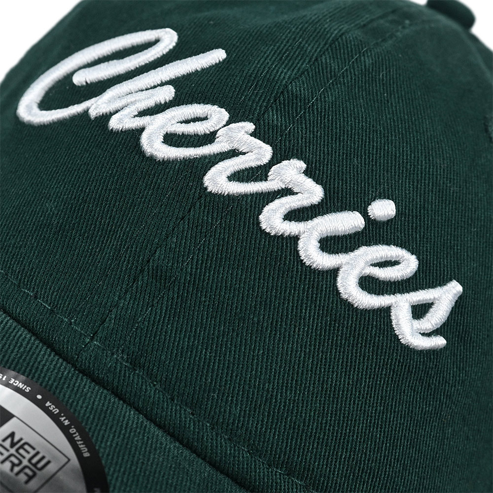 Add a fresh touch to your collection with the AFC Bournemouth Adults AFCB x New Era 9FORTY Cherries Cap in emerald green. Crafted from soft cotton twill with a washed finish, this 6-panel cap features a low-profile structured crown, pre-curved visor and adjustable strapback for a secure and comfortable fit. Designed in New Era’s iconic 9FORTY silhouette, it is detailed with bold white “Cherries” embroidery across the crown and the signature New Era logo on the side. A stylish and versatile accessory, perfect for showing your support on matchdays or as part of your everyday look.
