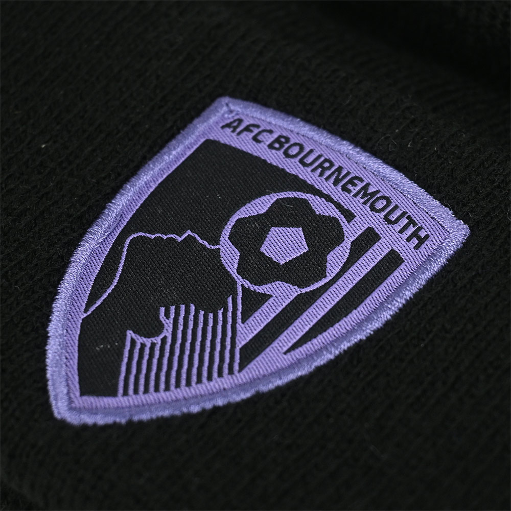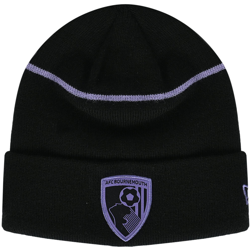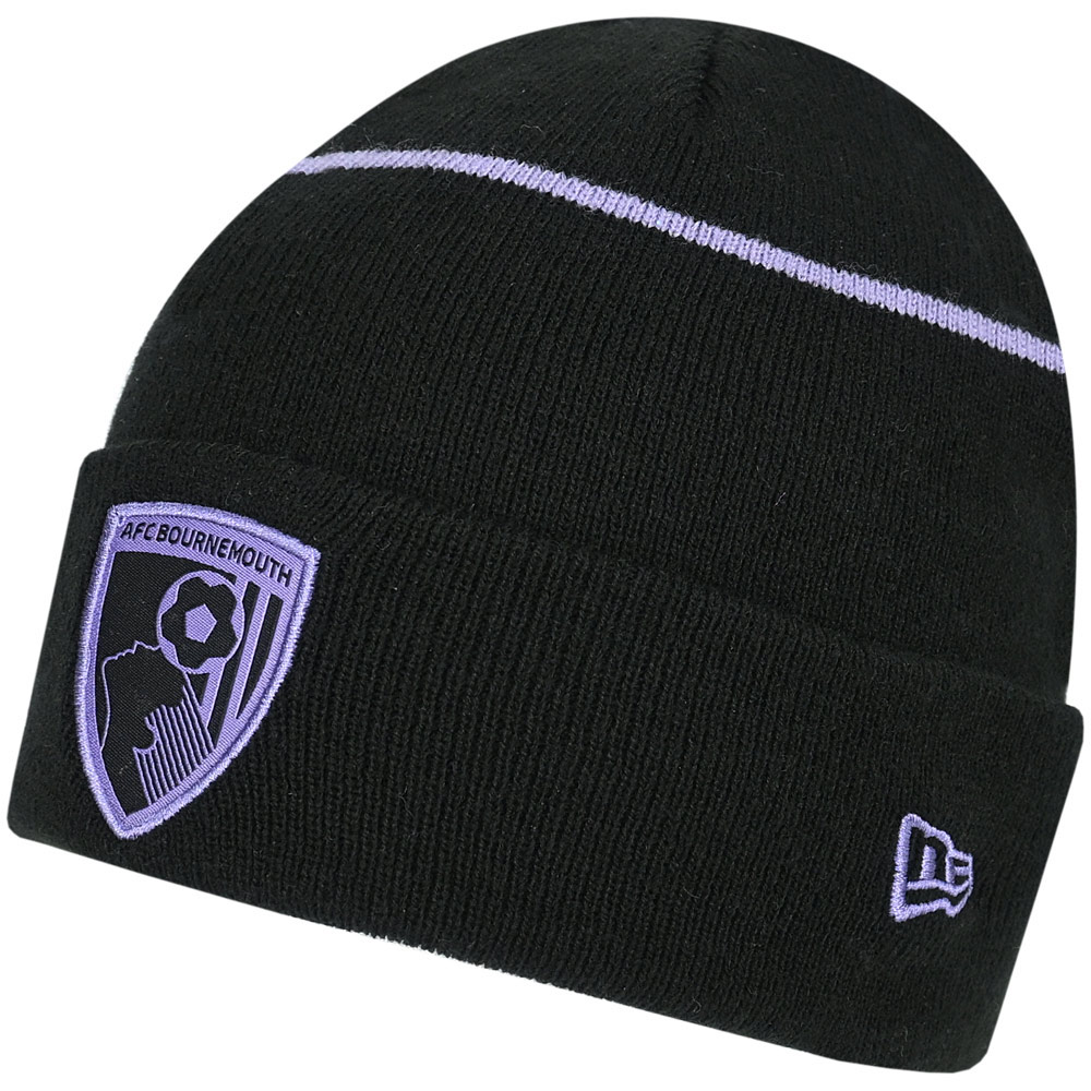 The AFC Bournemouth x New Era Contrast Cuff Beanie in black brings together comfort and style in a classic design. Made from soft, cosy acrylic, this beanie ensures warmth and comfort throughout the colder months. Featuring a contrasting grape pinstripe on the cuff, it adds a touch of flair to the traditional beanie style. The embroidered grape club crest on the front shows your team support, while the embroidered New Era flag on the side completes the look. With its sleek black and grape colourway, this beanie is a perfect for everyday wear.