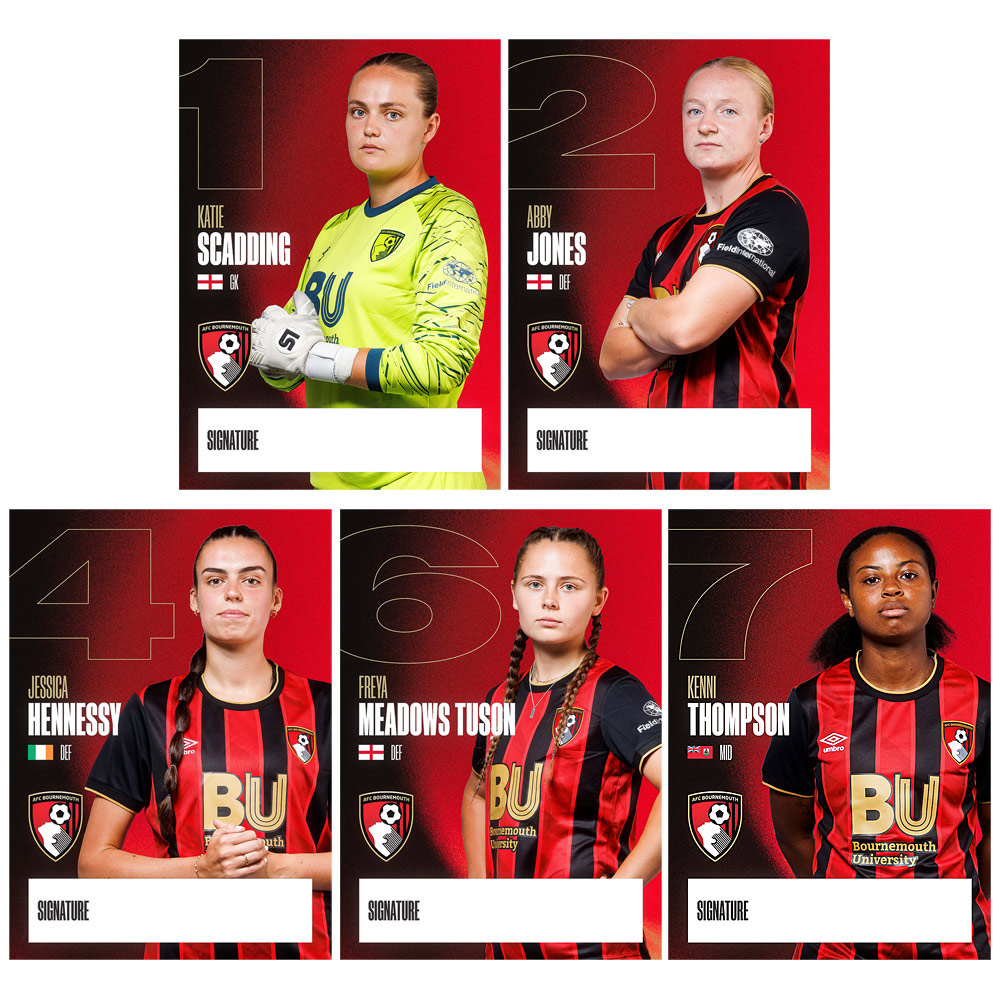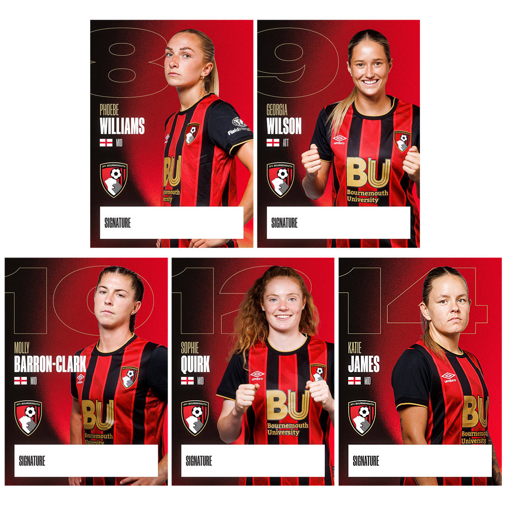 These AFC Bournemouth women's squad player cards will make a great keepsake or collectors item for any Cherries supporter. Featuring the whole women's squad, the 6x4 cards will make a great small gift or stocking filler, or you can challenge yourself to collect the whole set.