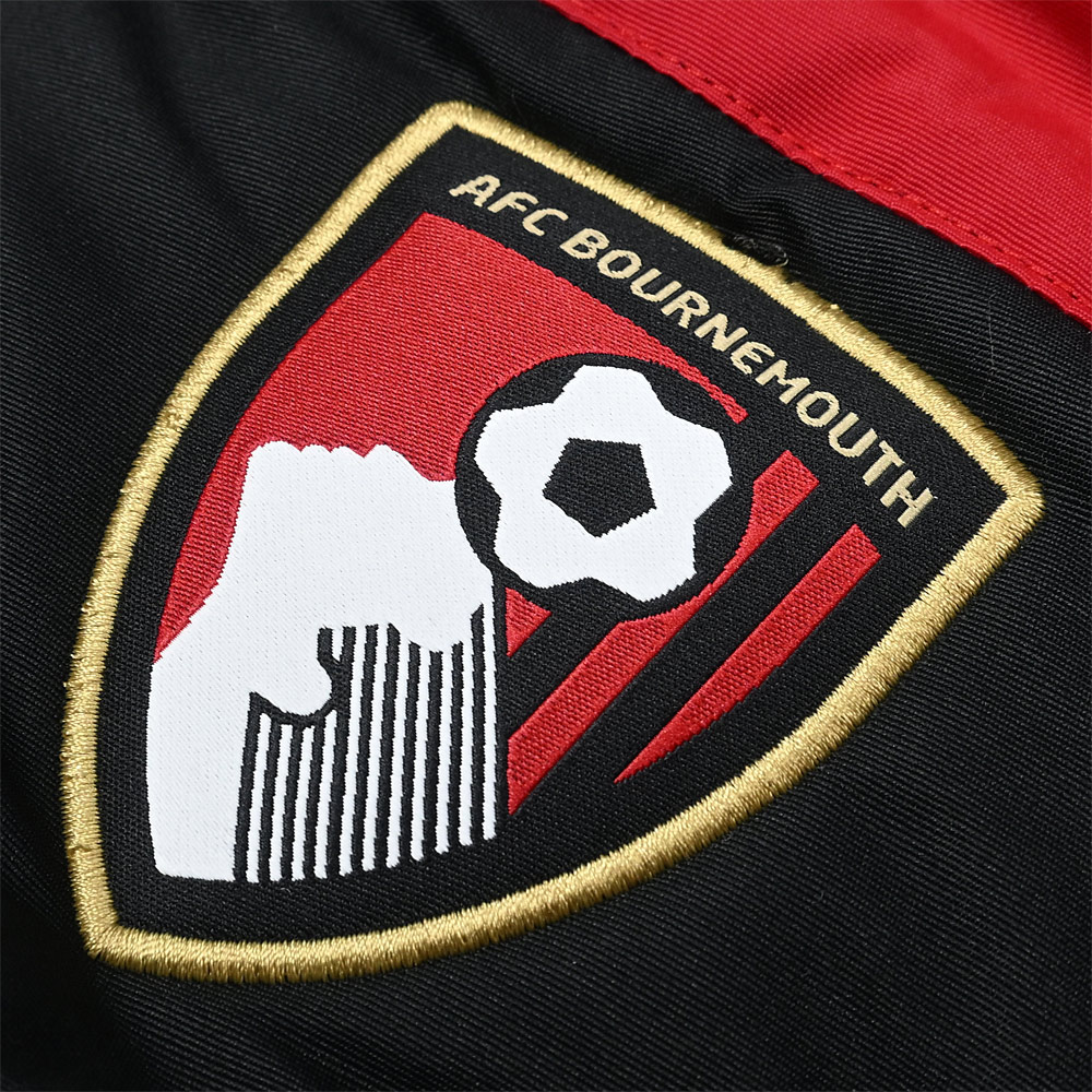 Keep young fans warm and ready for matchday in the AFC Bournemouth Kids Utah Gilet, featuring a sleek two-tone black and red design. Crafted with a durable nylon outer, soft polyester padding, and a full-length polar fleece lining, this gilet delivers all-day comfort and warmth. The horizontal quilt stitching and fleece-lined hood add an extra layer of cosiness, while the chunky nylon zip ensures easy wear. Finished with the full-colour woven club crest, this regular-fit gilet is perfect for boys and girls who want to show their support in style, whether at the ground or out and about.
