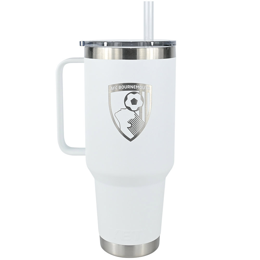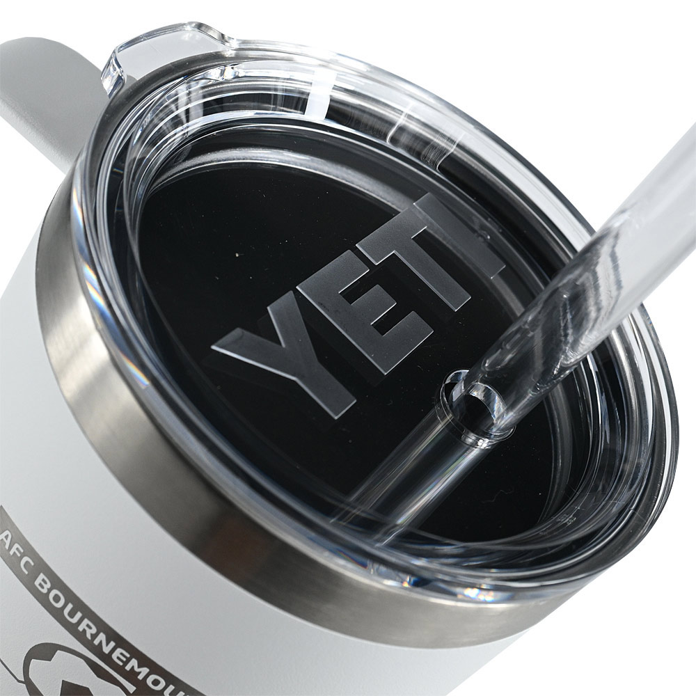 AFC Bournemouth have teamed up with renowned brand Yeti to produce this great range of YETI x AFCB drinkware. Built from durable, powder-coated 18/8 stainless steel, this premium 42oz white drinks mug is rust and puncture resistant, ensuring it stands up to everyday use. The double-wall vacuum insulation keeps your cold drinks chilled for longer, while the splash-resistant push-down lid and BPA-free straw make sipping effortless. With a generous 1.2L capacity and a cupholder-compatible design, it’s perfect for travel, training, or time on the terraces. Dishwasher safe for easy cleaning, and compatible with the MagSlide lid (which can be purchased from Yetis) for hot drinks, this versatile YETI bottle combines lasting quality with AFC Bournemouth style.